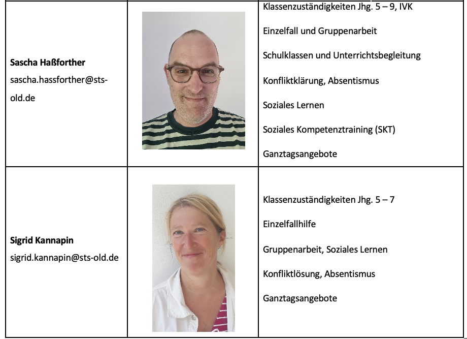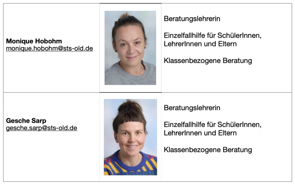 Folgende Ansprechpartner stehen dafür in der Schule zur Verfügung: