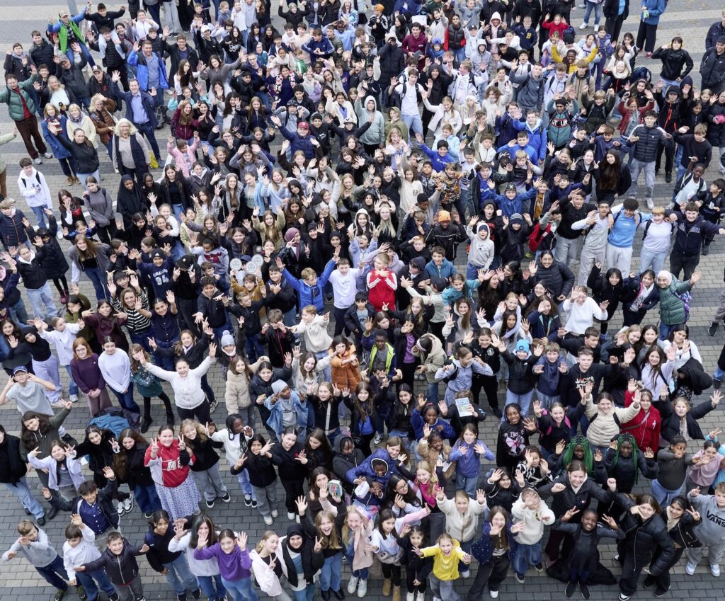 An unserer Schule werden zur Zeit knapp 1200 Schüler*innen von etwa 130 Lehrer*innen unterrichtet. Neun Sonderpädagog*innen und neun Sozialpädagog*innen unterstützen unsere pädagogische Arbeit in multiprofessionellen Teams. Zusätzlich werden wir tatkräftig unterstützt von unseren sechs Sekretärinnen im Schulbüro, drei Mitarbeitern im Hausmeisterteam, um die 40 Kursleiter*innen und einer großen Zahl toller Förderkurslehrer*innen.