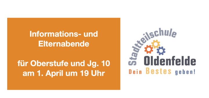 Informationsabend für die Vorstufe Am Mittwoch, den 1.4.2026 findet in der Aula der Stadtteilschule Oldenfelde um 19.00 Uhr ein Informationsabend für die Vorstufe (Klasse 11) statt. Dieser Informationsabend ist für alle Eltern der Schüler*innen...